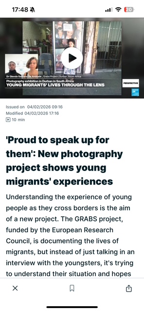 Glenda Santana de Andrade and Israel Wabikamba (one of the young GRABS participants in South Africa) were recently interviewed by France 24 about our recent photo exhibition at the KZNSA Gallery in eThekwini-Durban.