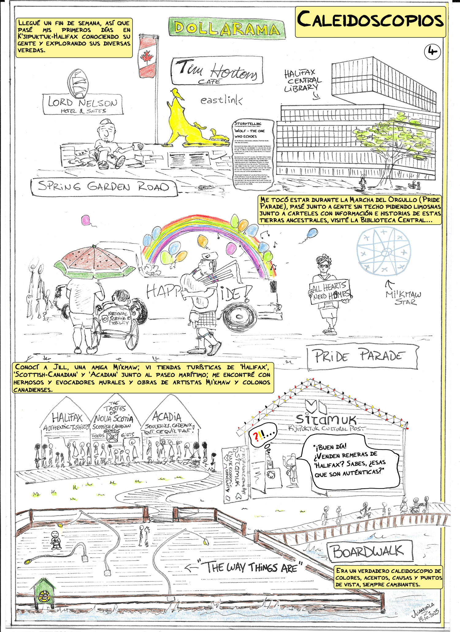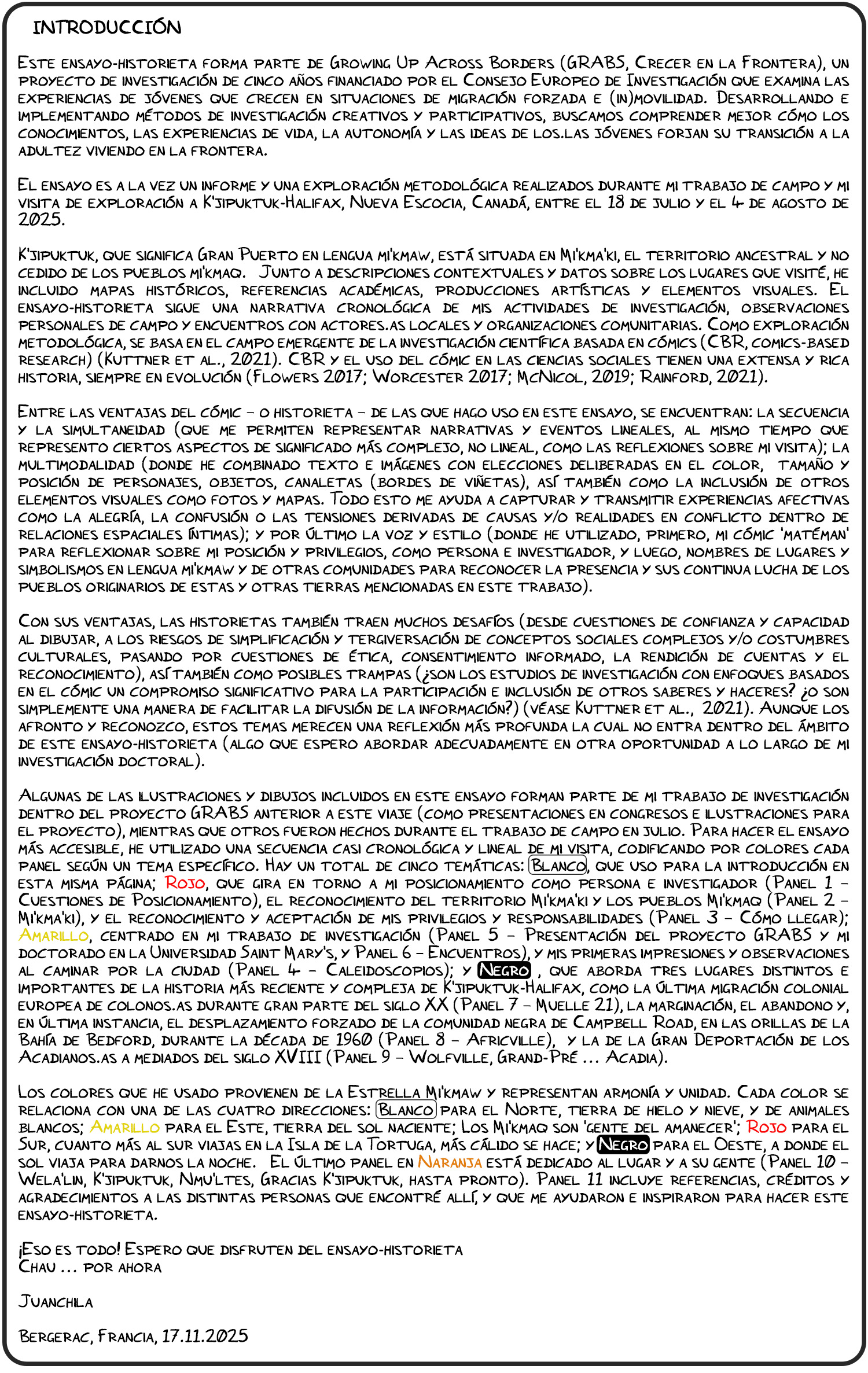 Una descripción y transcripción en español del contenido de este ensayo-historieta se puede descargar acá